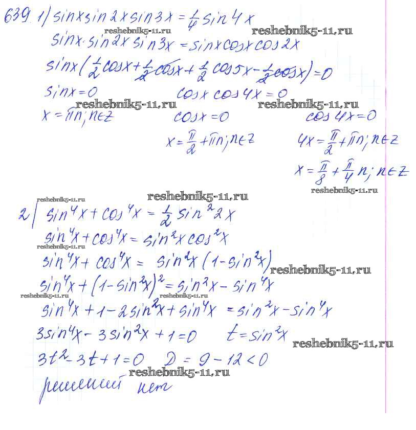Готовая домашняя работа с ответами по Алгебре за 10, 11 класс Алимов, Ткачева, Колягин, Федорова, Шабунин Учебник Базовый и углубленный уровень Просвещение 2015 ФГОС - Упражнения 639
