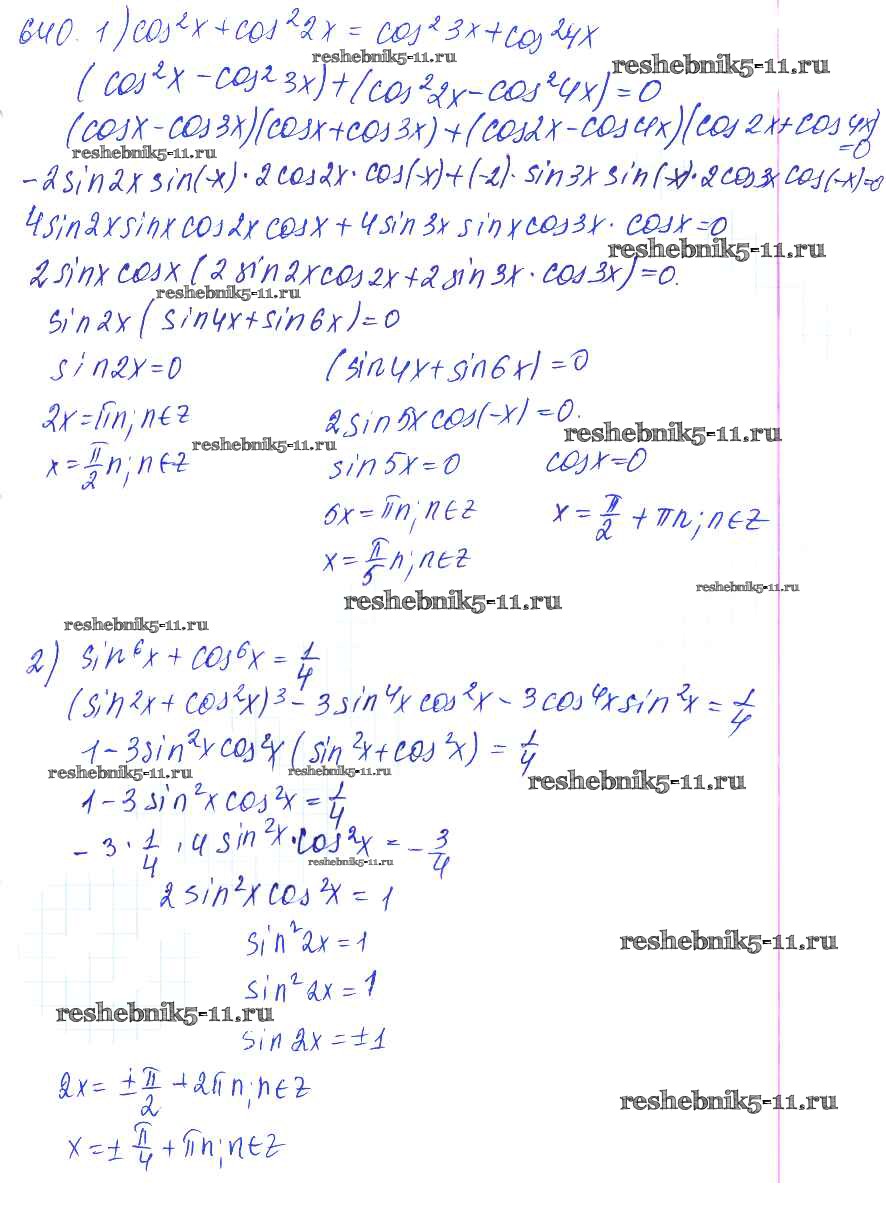 Готовая домашняя работа с ответами по Алгебре за 10, 11 класс Алимов, Ткачева, Колягин, Федорова, Шабунин Учебник Базовый и углубленный уровень Просвещение 2015 ФГОС - Упражнения 640
