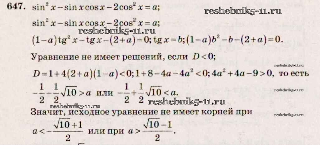 Готовая домашняя работа с ответами по Алгебре за 10, 11 класс Алимов, Ткачева, Колягин, Федорова, Шабунин Учебник Базовый и углубленный уровень Просвещение 2015 ФГОС - Упражнения 647