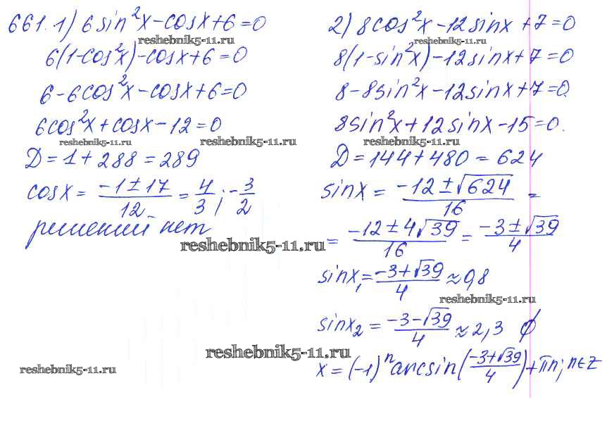 Готовая домашняя работа с ответами по Алгебре за 10, 11 класс Алимов, Ткачева, Колягин, Федорова, Шабунин Учебник Базовый и углубленный уровень Просвещение 2015 ФГОС - Упражнения 661
