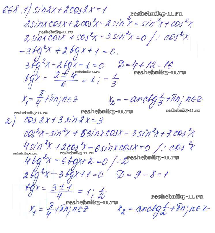 Готовая домашняя работа с ответами по Алгебре за 10, 11 класс Алимов, Ткачева, Колягин, Федорова, Шабунин Учебник Базовый и углубленный уровень Просвещение 2015 ФГОС - Упражнения 668