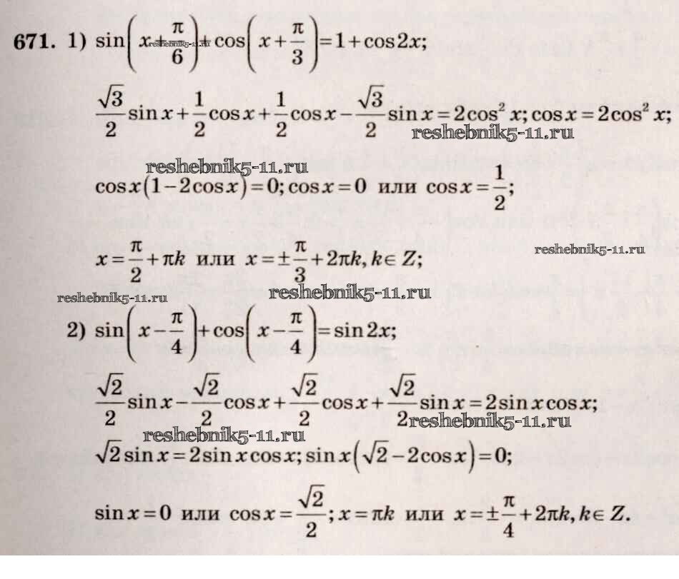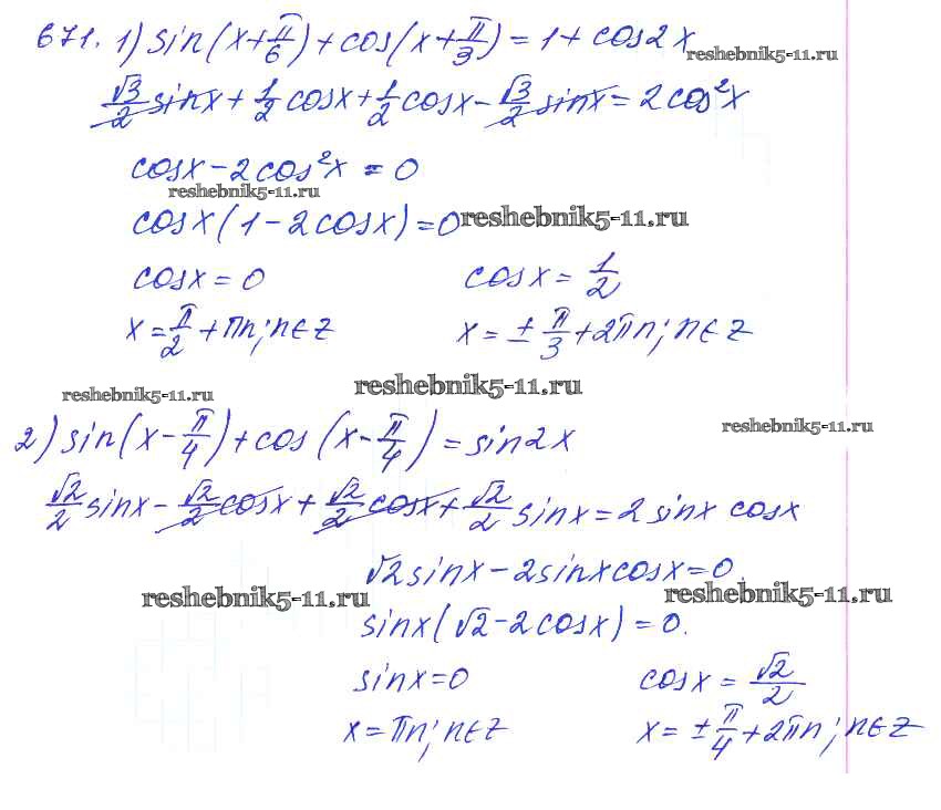 Готовая домашняя работа с ответами по Алгебре за 10, 11 класс Алимов, Ткачева, Колягин, Федорова, Шабунин Учебник Базовый и углубленный уровень Просвещение 2015 ФГОС - Упражнения 671