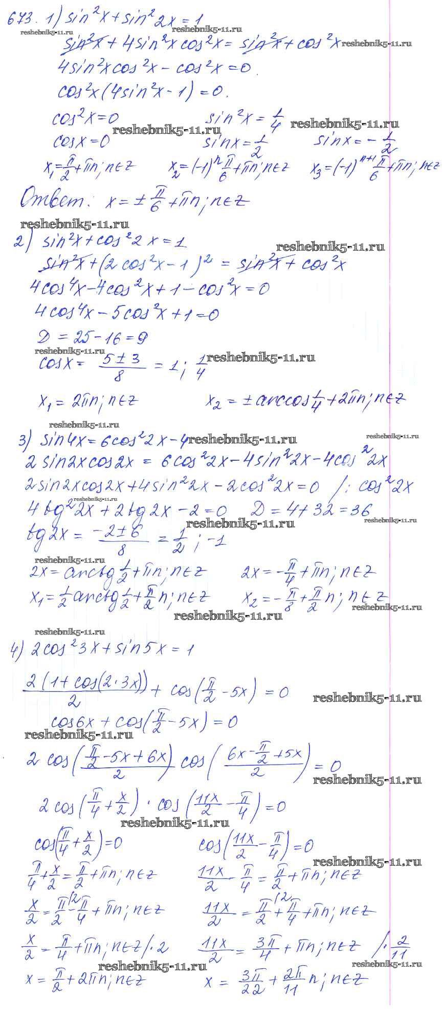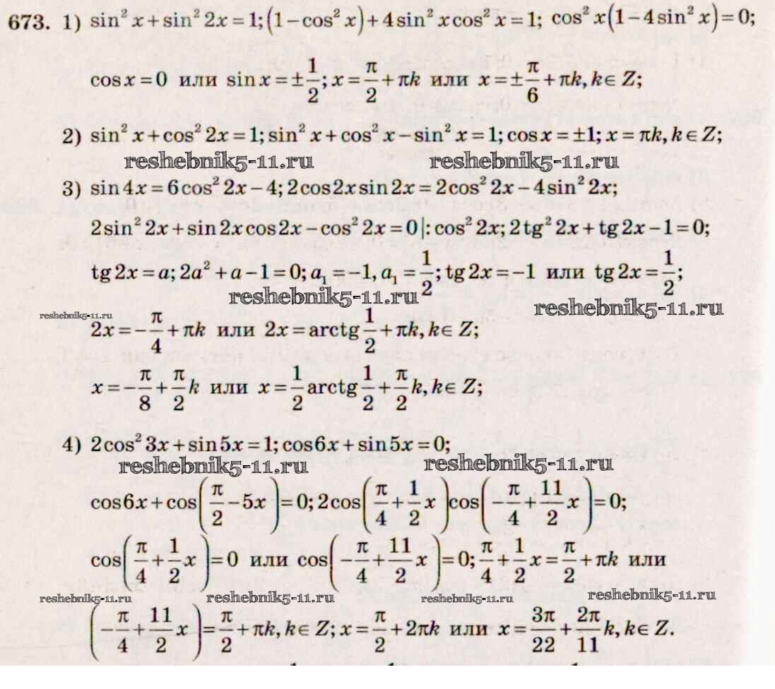 Готовая домашняя работа с ответами по Алгебре за 10, 11 класс Алимов, Ткачева, Колягин, Федорова, Шабунин Учебник Базовый и углубленный уровень Просвещение 2015 ФГОС - Упражнения 673