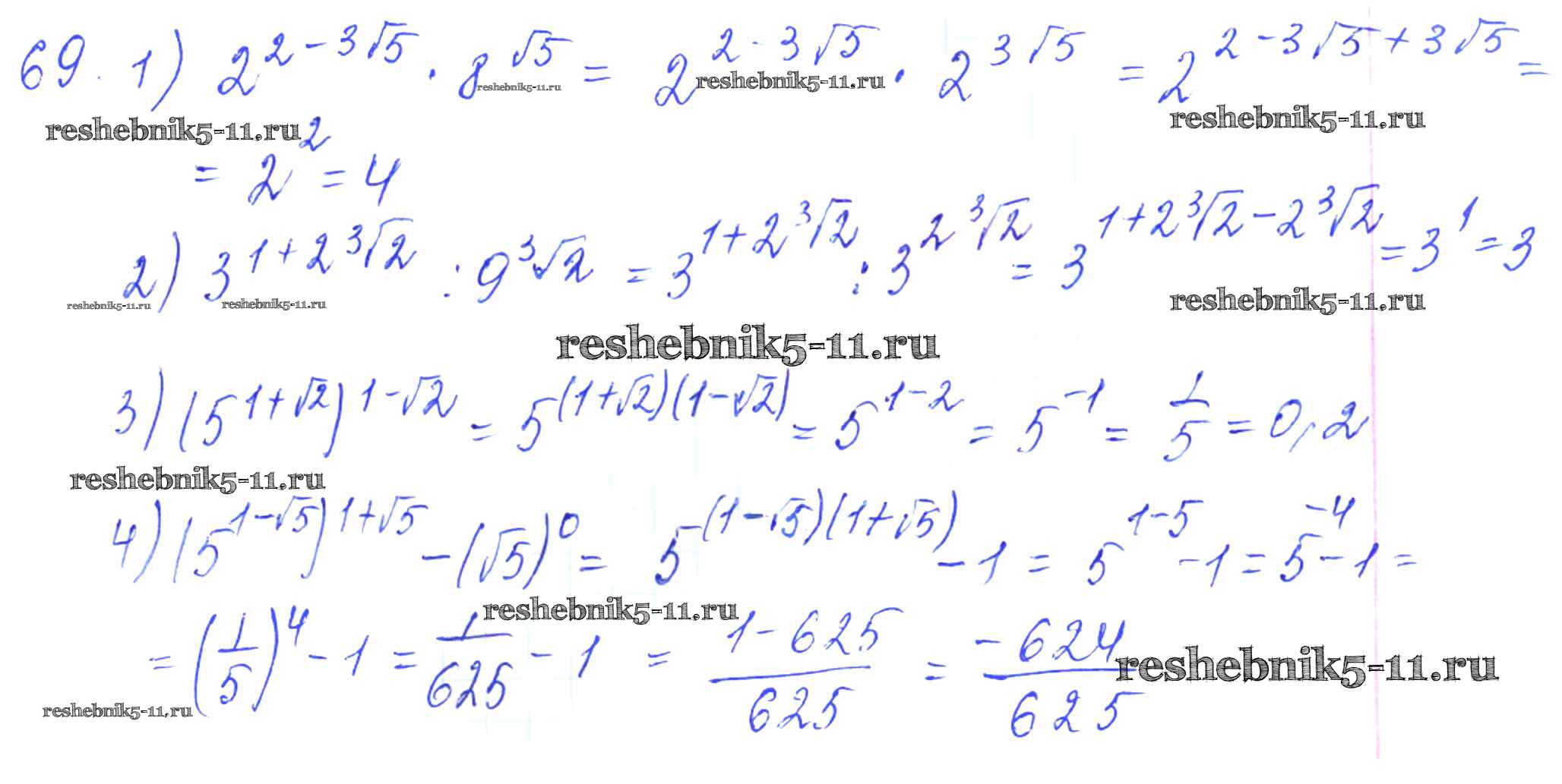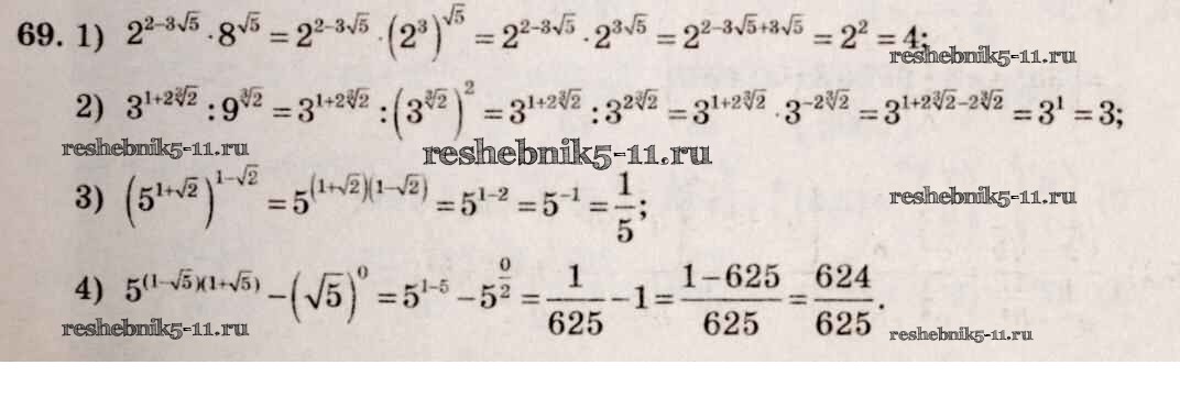Готовая домашняя работа с ответами по Алгебре за 10, 11 класс Алимов, Ткачева, Колягин, Федорова, Шабунин Учебник Базовый и углубленный уровень Просвещение 2015 ФГОС - Упражнения 69