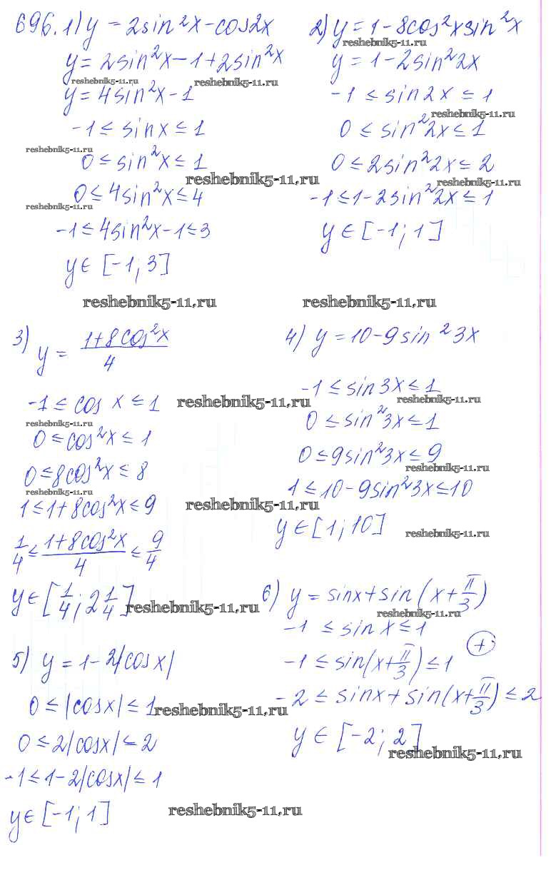 Готовая домашняя работа с ответами по Алгебре за 10, 11 класс Алимов, Ткачева, Колягин, Федорова, Шабунин Учебник Базовый и углубленный уровень Просвещение 2015 ФГОС - Упражнения 696