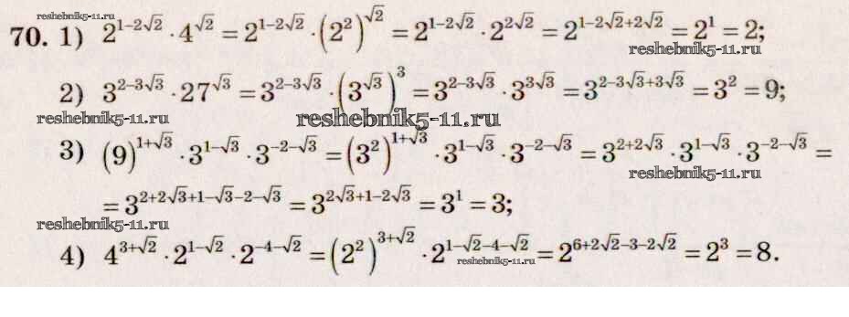 Готовая домашняя работа с ответами по Алгебре за 10, 11 класс Алимов, Ткачева, Колягин, Федорова, Шабунин Учебник Базовый и углубленный уровень Просвещение 2015 ФГОС - Упражнения 70