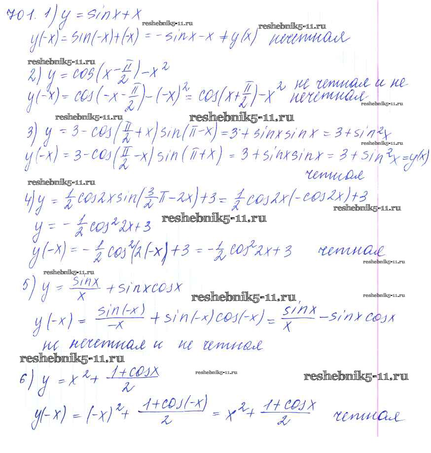 Готовая домашняя работа с ответами по Алгебре за 10, 11 класс Алимов, Ткачева, Колягин, Федорова, Шабунин Учебник Базовый и углубленный уровень Просвещение 2015 ФГОС - Упражнения 701