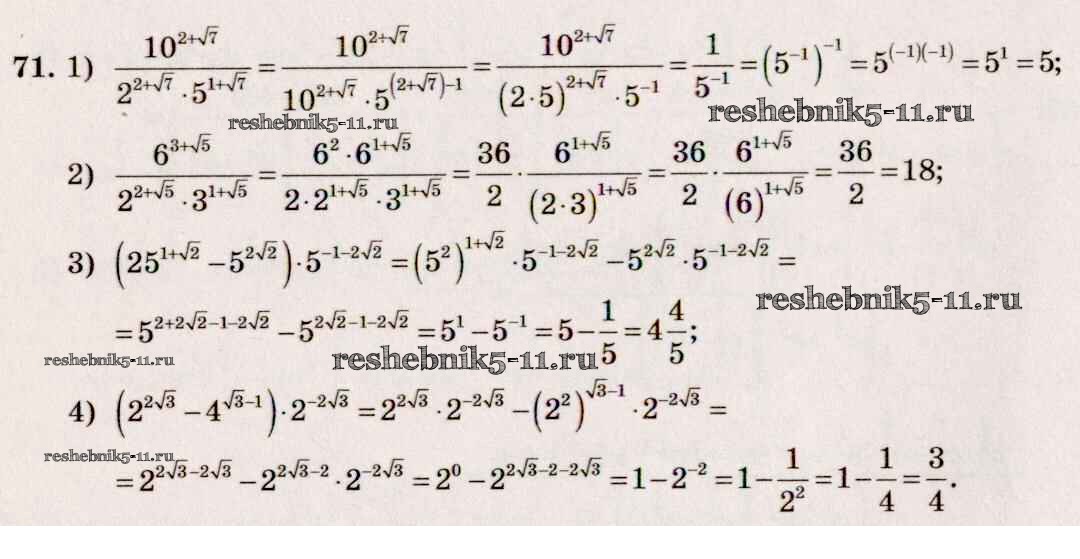 Готовая домашняя работа с ответами по Алгебре за 10, 11 класс Алимов, Ткачева, Колягин, Федорова, Шабунин Учебник Базовый и углубленный уровень Просвещение 2015 ФГОС - Упражнения 71