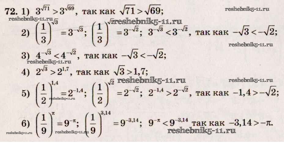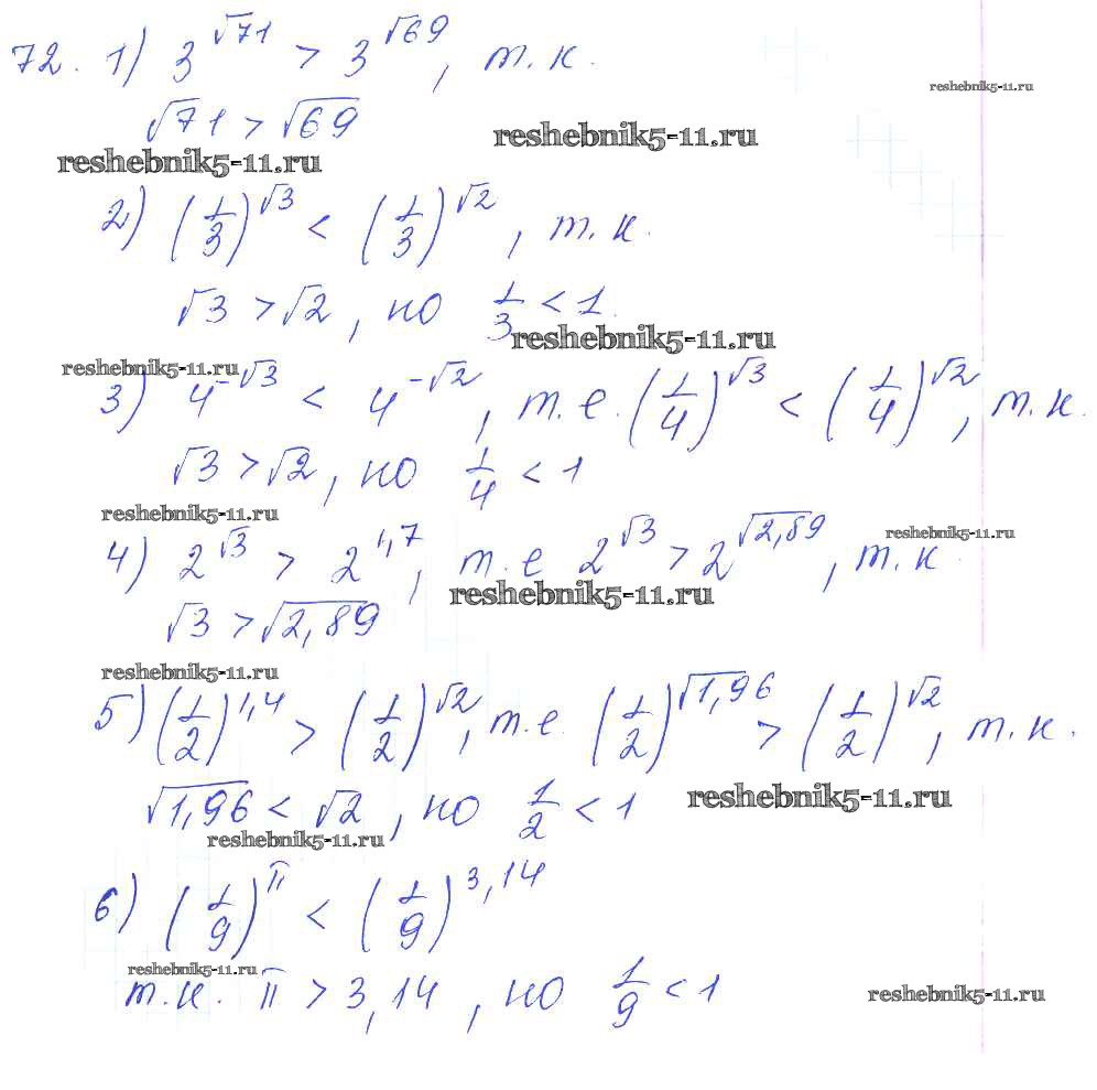 Готовая домашняя работа с ответами по Алгебре за 10, 11 класс Алимов, Ткачева, Колягин, Федорова, Шабунин Учебник Базовый и углубленный уровень Просвещение 2015 ФГОС - Упражнения 72