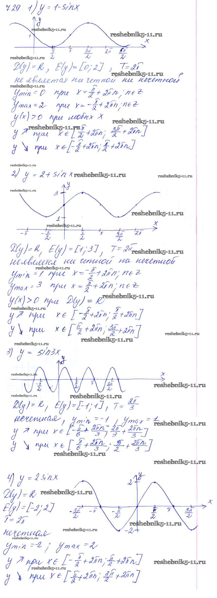 Готовая домашняя работа с ответами по Алгебре за 10, 11 класс Алимов, Ткачева, Колягин, Федорова, Шабунин Учебник Базовый и углубленный уровень Просвещение 2015 ФГОС - Упражнения 729