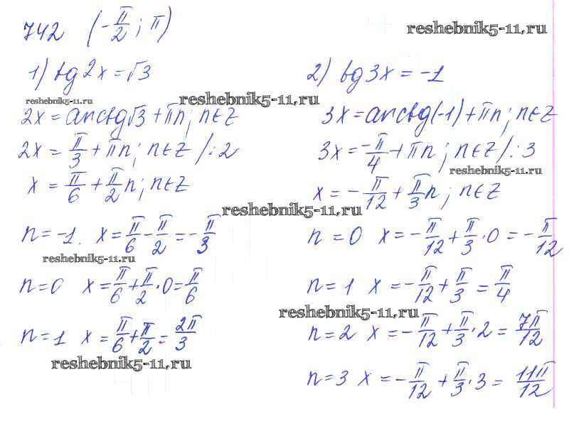 Готовая домашняя работа с ответами по Алгебре за 10, 11 класс Алимов, Ткачева, Колягин, Федорова, Шабунин Учебник Базовый и углубленный уровень Просвещение 2015 ФГОС - Упражнения 742