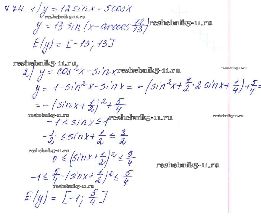 Готовая домашняя работа с ответами по Алгебре за 10, 11 класс Алимов, Ткачева, Колягин, Федорова, Шабунин Учебник Базовый и углубленный уровень Просвещение 2015 ФГОС - Упражнения 774
