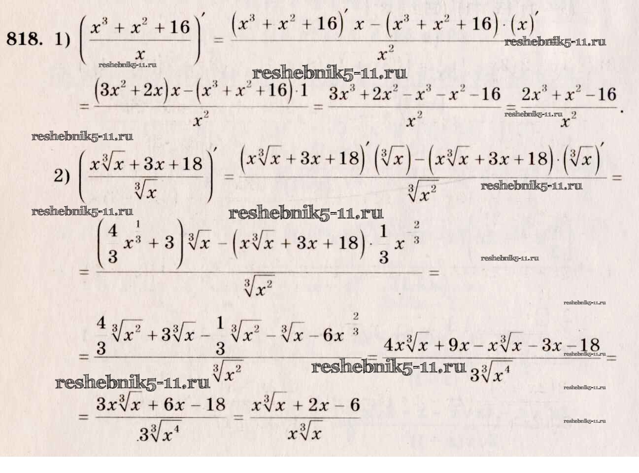Готовая домашняя работа с ответами по Алгебре за 10, 11 класс Алимов, Ткачева, Колягин, Федорова, Шабунин Учебник Базовый и углубленный уровень Просвещение 2015 ФГОС - Упражнения 818