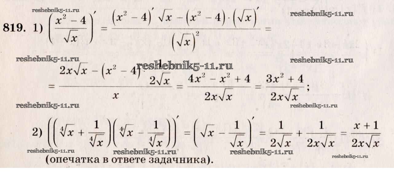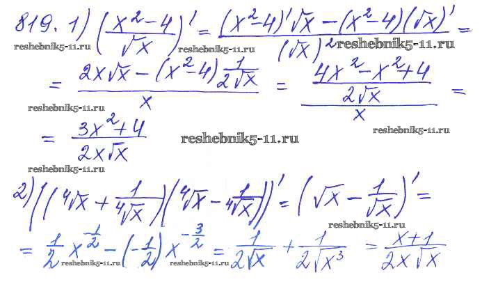 Готовая домашняя работа с ответами по Алгебре за 10, 11 класс Алимов, Ткачева, Колягин, Федорова, Шабунин Учебник Базовый и углубленный уровень Просвещение 2015 ФГОС - Упражнения 819