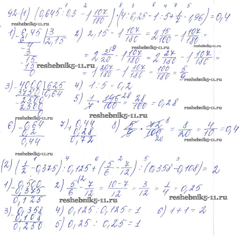 Готовая домашняя работа с ответами по Алгебре за 10, 11 класс Алимов, Ткачева, Колягин, Федорова, Шабунин Учебник Базовый и углубленный уровень Просвещение 2015 ФГОС - Упражнения 92