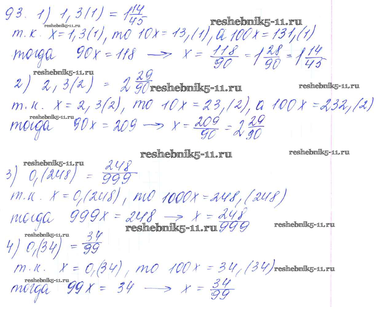 Готовая домашняя работа с ответами по Алгебре за 10, 11 класс Алимов, Ткачева, Колягин, Федорова, Шабунин Учебник Базовый и углубленный уровень Просвещение 2015 ФГОС - Упражнения 93