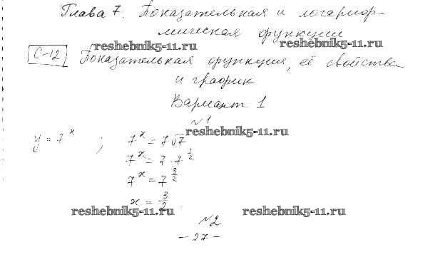 Готовая домашняя работа с ответами по Алгебре за 11 класс Александрова Самостоятельные работы УМК Базовый уровень Мнемозина 2016 ФГОС - Самостоятельные работы 12 (Варианты) 1