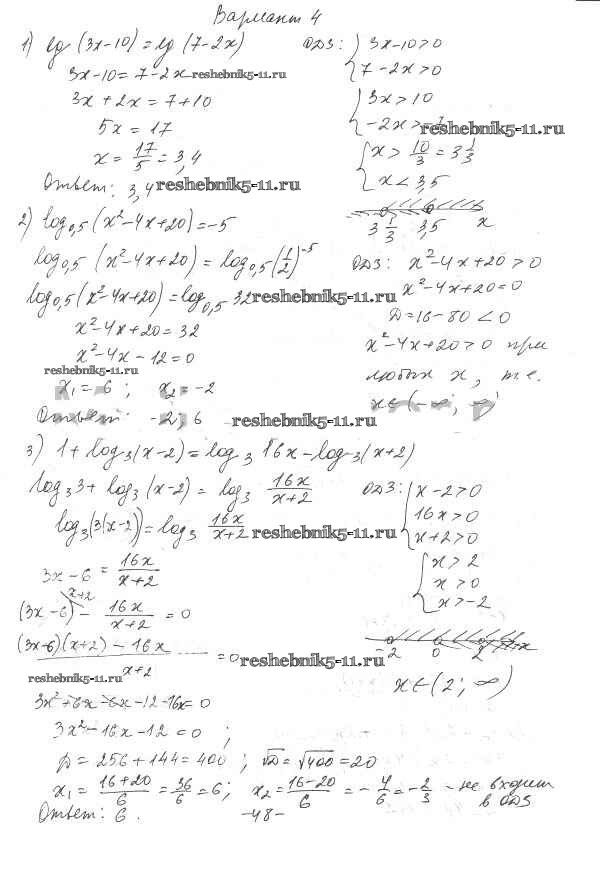 Готовая домашняя работа с ответами по Алгебре за 11 класс Александрова Самостоятельные работы УМК Базовый уровень Мнемозина 2016 ФГОС - Самостоятельные работы 21 (Варианты) 4
