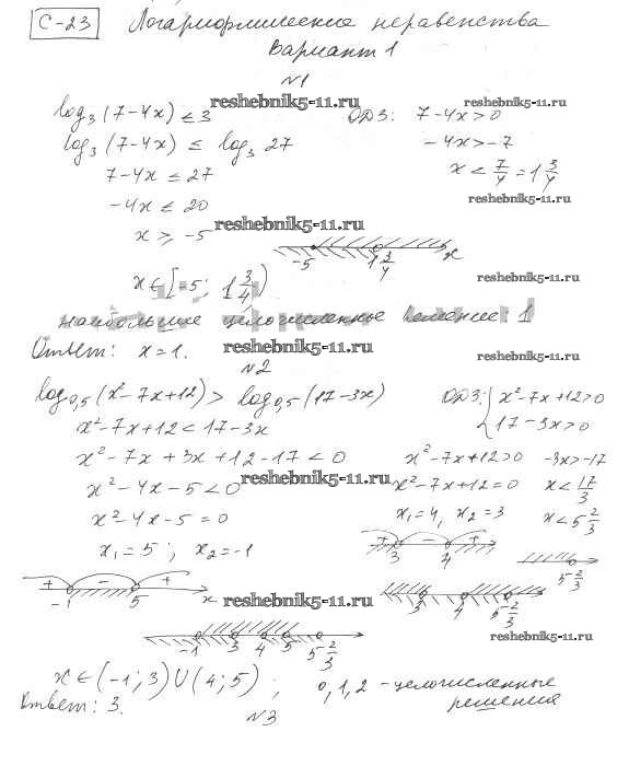 Готовая домашняя работа с ответами по Алгебре за 11 класс Александрова Самостоятельные работы УМК Базовый уровень Мнемозина 2016 ФГОС - Самостоятельные работы 23 (Варианты) 1