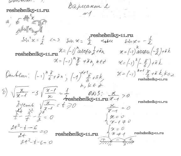 Готовая домашняя работа с ответами по Алгебре за 11 класс Александрова Самостоятельные работы УМК Базовый уровень Мнемозина 2016 ФГОС - Самостоятельные работы 35 (Варианты) 2