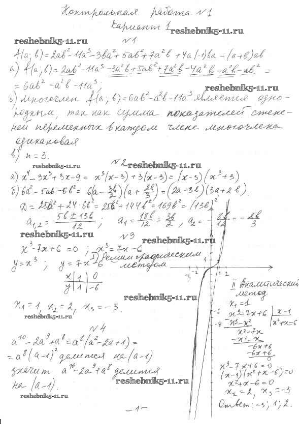 Готовая домашняя работа с ответами по Алгебре за 11 класс Глизбург Контрольные работы Базовый и углубленный уровень Мнемозина 2016 ФГОС - КР-1 Вариант-1