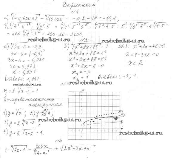 Готовая домашняя работа с ответами по Алгебре за 11 класс Глизбург Контрольные работы Базовый и углубленный уровень Мнемозина 2016 ФГОС - КР-2 Вариант-4