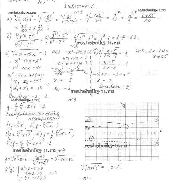 Готовая домашняя работа с ответами по Алгебре за 11 класс Глизбург Контрольные работы Базовый и углубленный уровень Мнемозина 2016 ФГОС - КР-2 Вариант-6