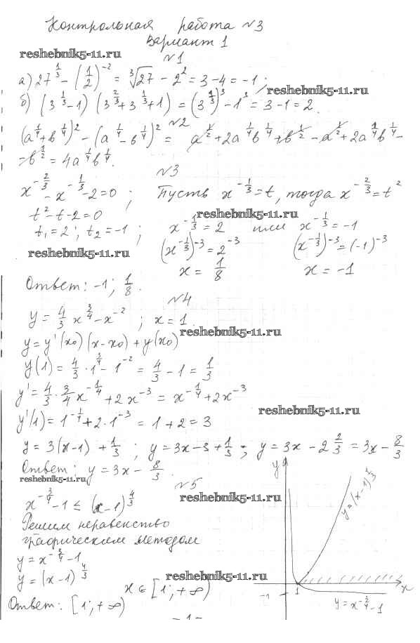 Готовая домашняя работа с ответами по Алгебре за 11 класс Глизбург Контрольные работы Базовый и углубленный уровень Мнемозина 2016 ФГОС - КР-3 Вариант-1