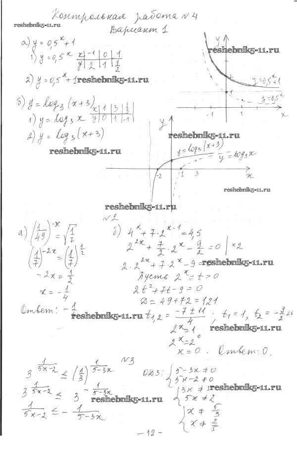 Готовая домашняя работа с ответами по Алгебре за 11 класс Глизбург Контрольные работы Базовый и углубленный уровень Мнемозина 2016 ФГОС - КР-4 Вариант-1