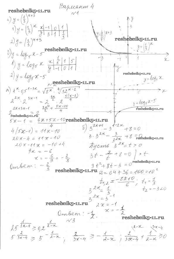 Готовая домашняя работа с ответами по Алгебре за 11 класс Глизбург Контрольные работы Базовый и углубленный уровень Мнемозина 2016 ФГОС - КР-4 Вариант-4