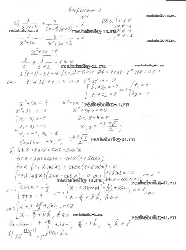 Готовая домашняя работа с ответами по Алгебре за 11 класс Глизбург Контрольные работы Базовый и углубленный уровень Мнемозина 2016 ФГОС - КР-7 Вариант-3