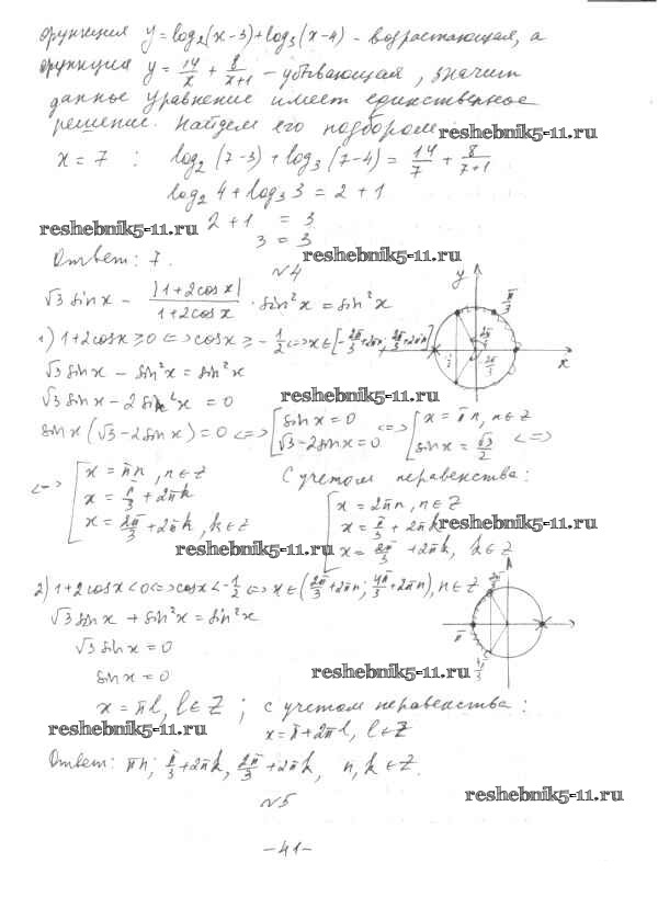 Готовая домашняя работа с ответами по Алгебре за 11 класс Глизбург Контрольные работы Базовый и углубленный уровень Мнемозина 2016 ФГОС - КР-7 Вариант-4