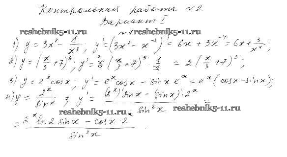 Готовая домашняя работа с ответами по Алгебре за 11 класс Шабунин, Газарян, Ткачева, Федорова Дидактические материалы Базовый уровень Просвещение 2013 ФГОС - Контрольная работа 2 Вариант-1