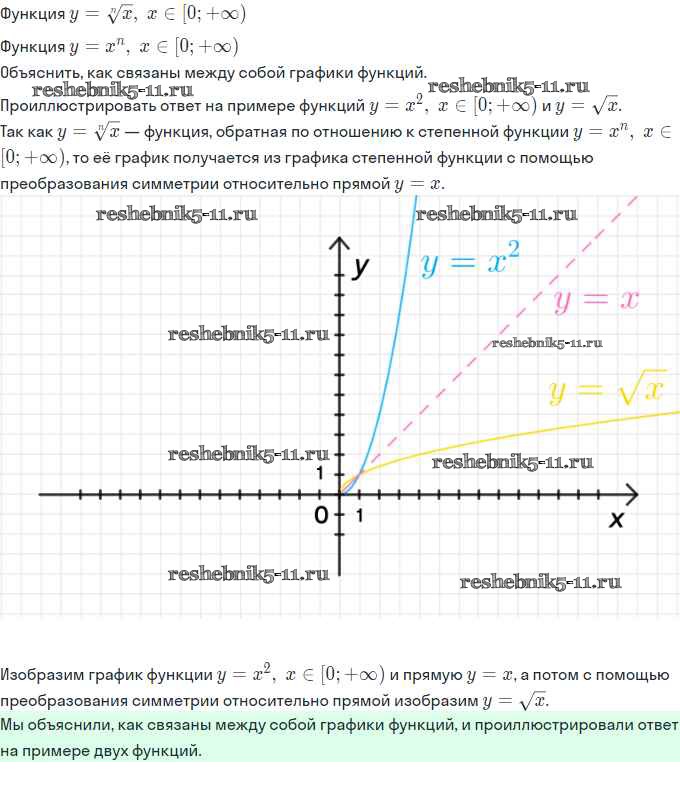 Готовая домашняя работа с ответами по Алгебре за 11 класс Мордкович, Семёнов Учебник Базовый и углубленный уровень Мнемозина 2017 ФГОС - §5. Функция у=n^√x, её свойства и график 2