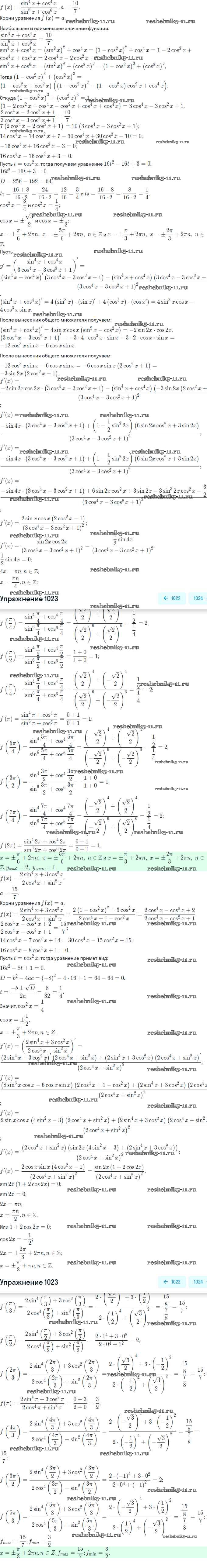 Готовая домашняя работа с ответами по Алгебре за 11 класс Колягин, Ткачева, Федорова, Шабунин Учебник Базовый и углубленный уровень Просвещение 2018 ФГОС - Упражнения 1023