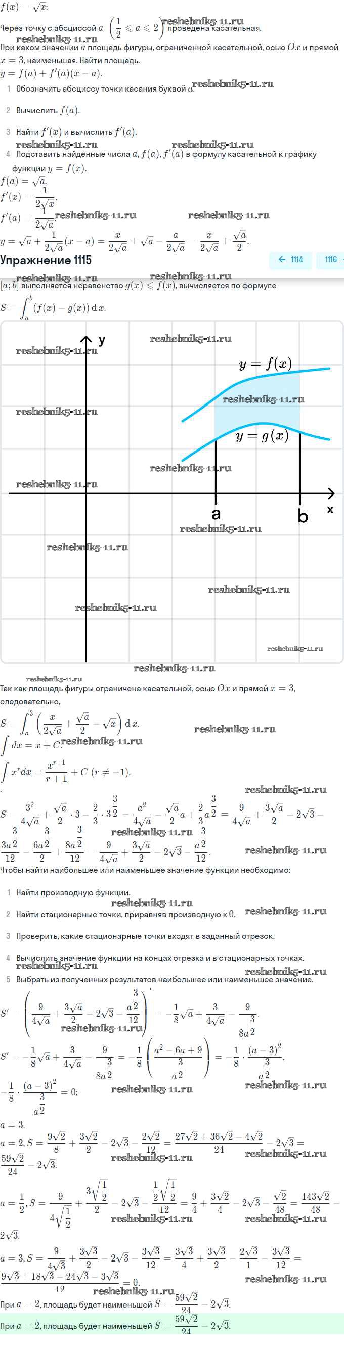 Готовая домашняя работа с ответами по Алгебре за 11 класс Колягин, Ткачева, Федорова, Шабунин Учебник Базовый и углубленный уровень Просвещение 2018 ФГОС - Упражнения 1115