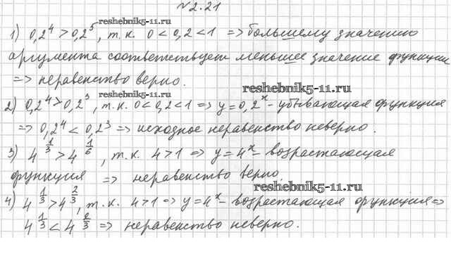 Готовая домашняя работа с ответами по Алгебре за 11 класс Мерзляк, Номировский, Полонский Учебник Алгоритм успеха Базовый и профильный уровни Вентана-граф 2017 ФГОС - §2. Задачи о мгновенной скорости и касательной к графику функции 2.21