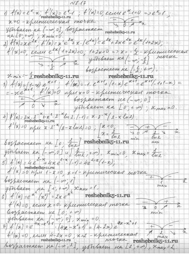 Готовая домашняя работа с ответами по Алгебре за 11 класс Мерзляк, Номировский, Полонский Учебник Алгоритм успеха Базовый и профильный уровни Вентана-граф 2017 ФГОС - §8. Наибольшее и наименьшее значения функции 8.17