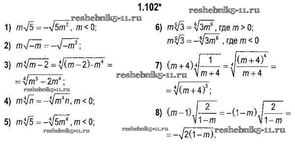 Готовая домашняя работа с ответами по Алгебре за 11 класс Кузнецова, Муравьева, Шнеперман, Ящин Учебник Народная асвета 2015 - Глава 1 1.102