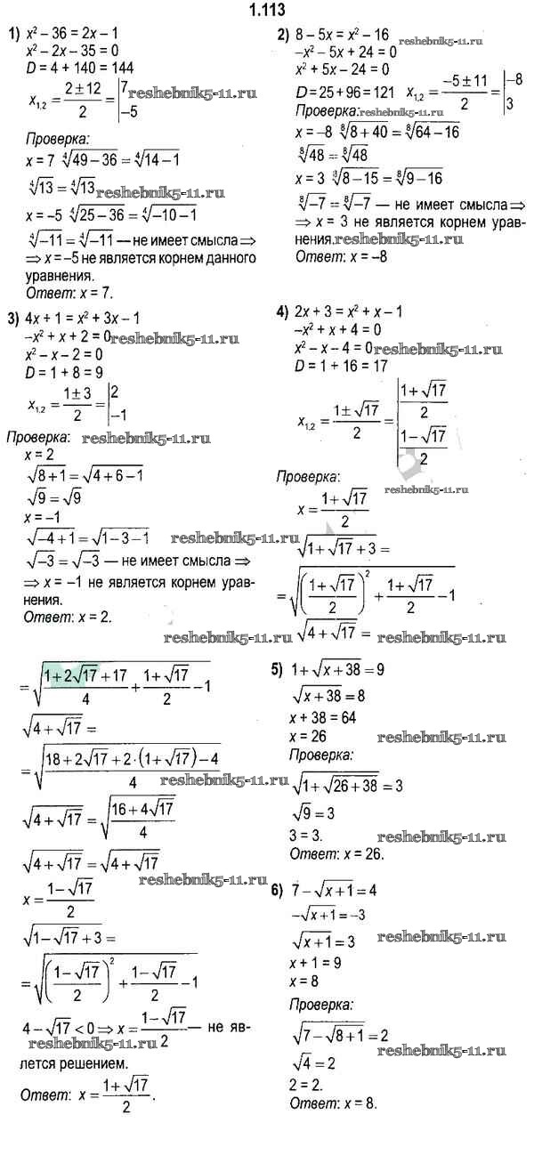 Готовая домашняя работа с ответами по Алгебре за 11 класс Кузнецова, Муравьева, Шнеперман, Ящин Учебник Народная асвета 2015 - Глава 1 1.113