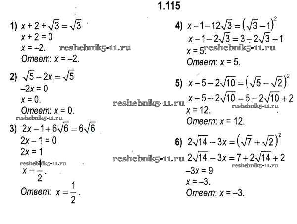 Готовая домашняя работа с ответами по Алгебре за 11 класс Кузнецова, Муравьева, Шнеперман, Ящин Учебник Народная асвета 2015 - Глава 1 1.115