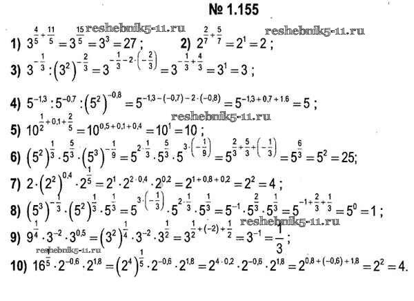 Готовая домашняя работа с ответами по Алгебре за 11 класс Кузнецова, Муравьева, Шнеперман, Ящин Учебник Народная асвета 2015 - Глава 1 1.155