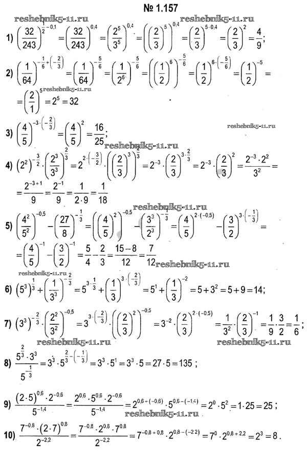 Готовая домашняя работа с ответами по Алгебре за 11 класс Кузнецова, Муравьева, Шнеперман, Ящин Учебник Народная асвета 2015 - Глава 1 1.157