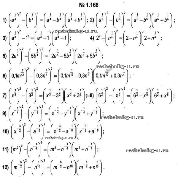Готовая домашняя работа с ответами по Алгебре за 11 класс Кузнецова, Муравьева, Шнеперман, Ящин Учебник Народная асвета 2015 - Глава 1 1.168