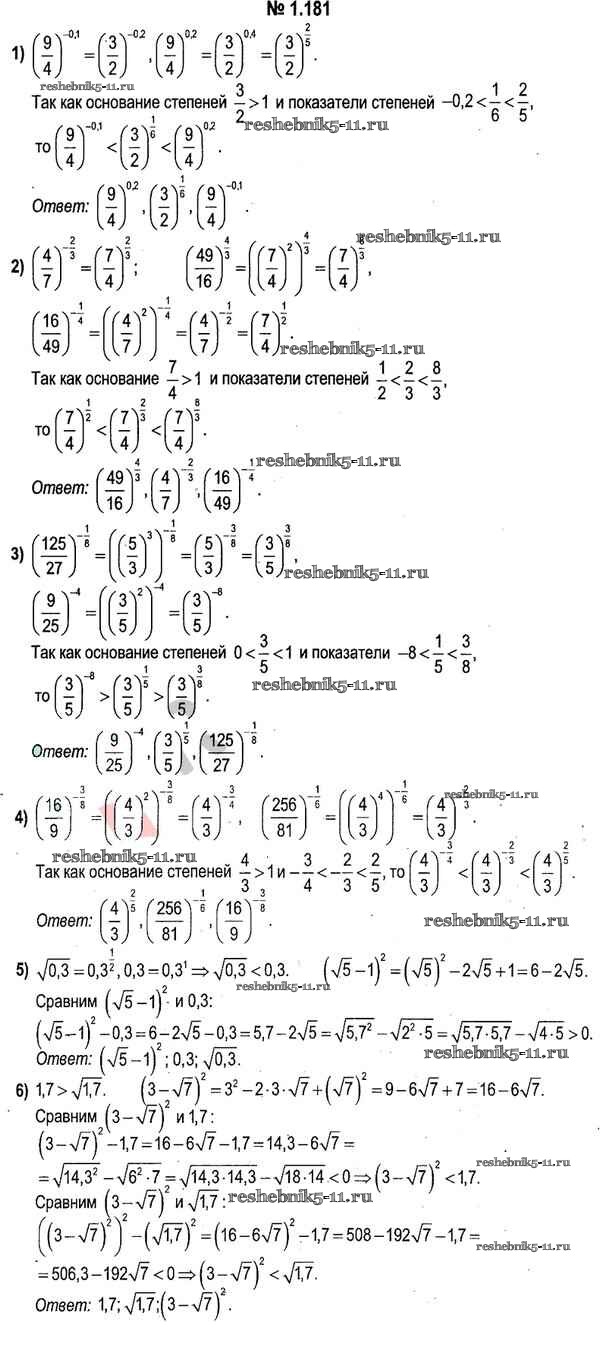 Готовая домашняя работа с ответами по Алгебре за 11 класс Кузнецова, Муравьева, Шнеперман, Ящин Учебник Народная асвета 2015 - Глава 1 1.181