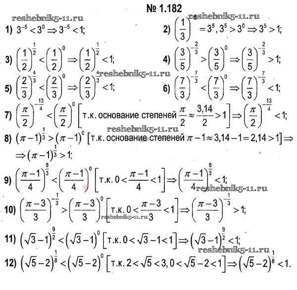 Готовая домашняя работа с ответами по Алгебре за 11 класс Кузнецова, Муравьева, Шнеперман, Ящин Учебник Народная асвета 2015 - Глава 1 1.182