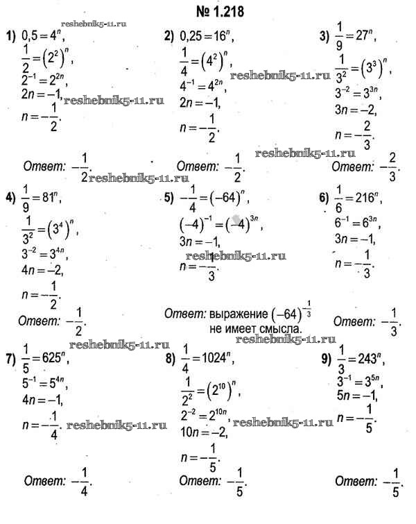 Готовая домашняя работа с ответами по Алгебре за 11 класс Кузнецова, Муравьева, Шнеперман, Ящин Учебник Народная асвета 2015 - Глава 1 1.218