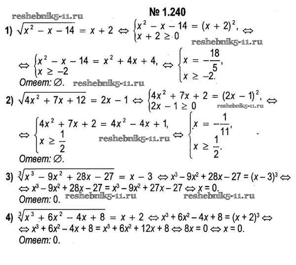 Готовая домашняя работа с ответами по Алгебре за 11 класс Кузнецова, Муравьева, Шнеперман, Ящин Учебник Народная асвета 2015 - Глава 1 1.240