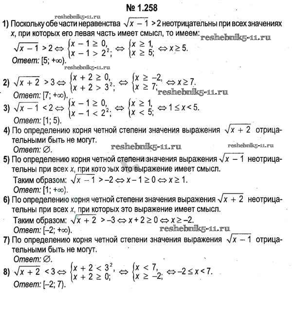Готовая домашняя работа с ответами по Алгебре за 11 класс Кузнецова, Муравьева, Шнеперман, Ящин Учебник Народная асвета 2015 - Глава 1 1.258