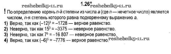 Готовая домашняя работа с ответами по Алгебре за 11 класс Кузнецова, Муравьева, Шнеперман, Ящин Учебник Народная асвета 2015 - Глава 1 1.26